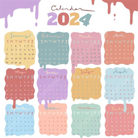 - Yearly calendar showing months for the year 2024.