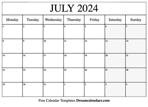 - Web printable calendar of july 2024.